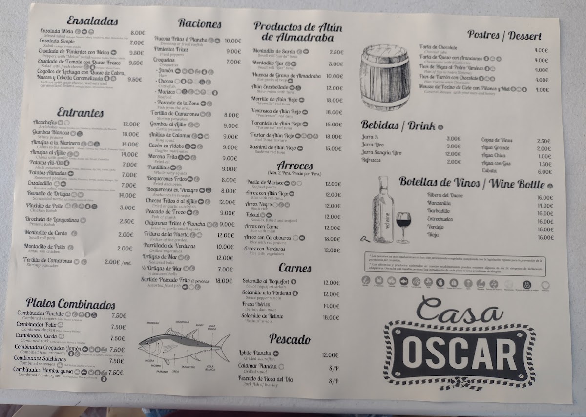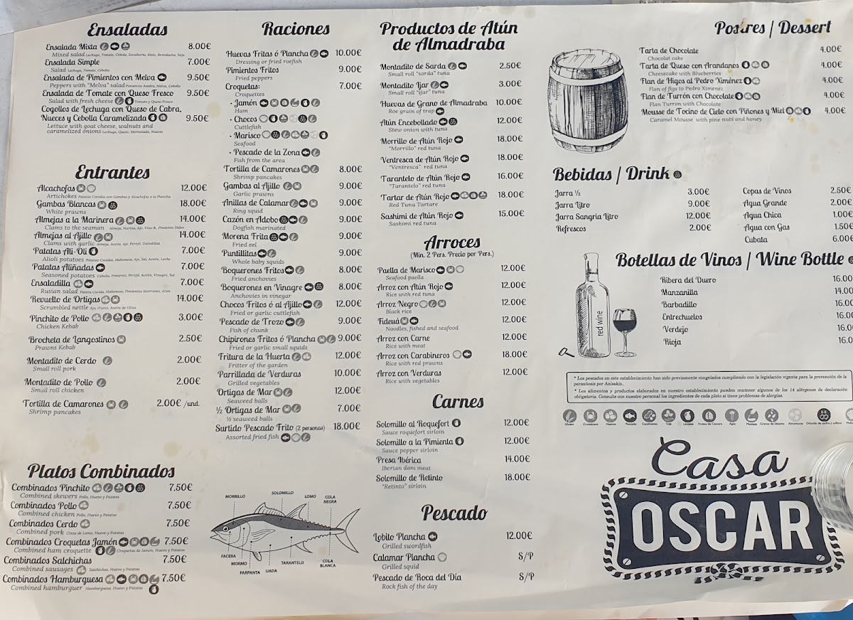 Tucked away in 11160 Barbate, Cádiz, Spain, the Casa Oscar Menu feels like a love letter to the Andalusian coast. From the first glance, you can tell it’s all about fresh, local flavors done right. Think plates of just-caught seafood, simply grilled to let the natural taste shine, alongside comforting Spanish classics that make you want to linger a little longer at the table.